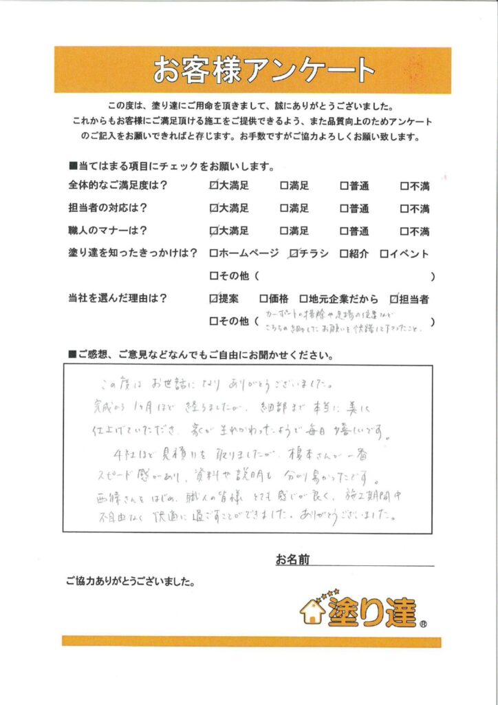 4社ほど見積りを取りましたが、榎本さんが一番スピード感があり、資料や説明も分り易かったです。