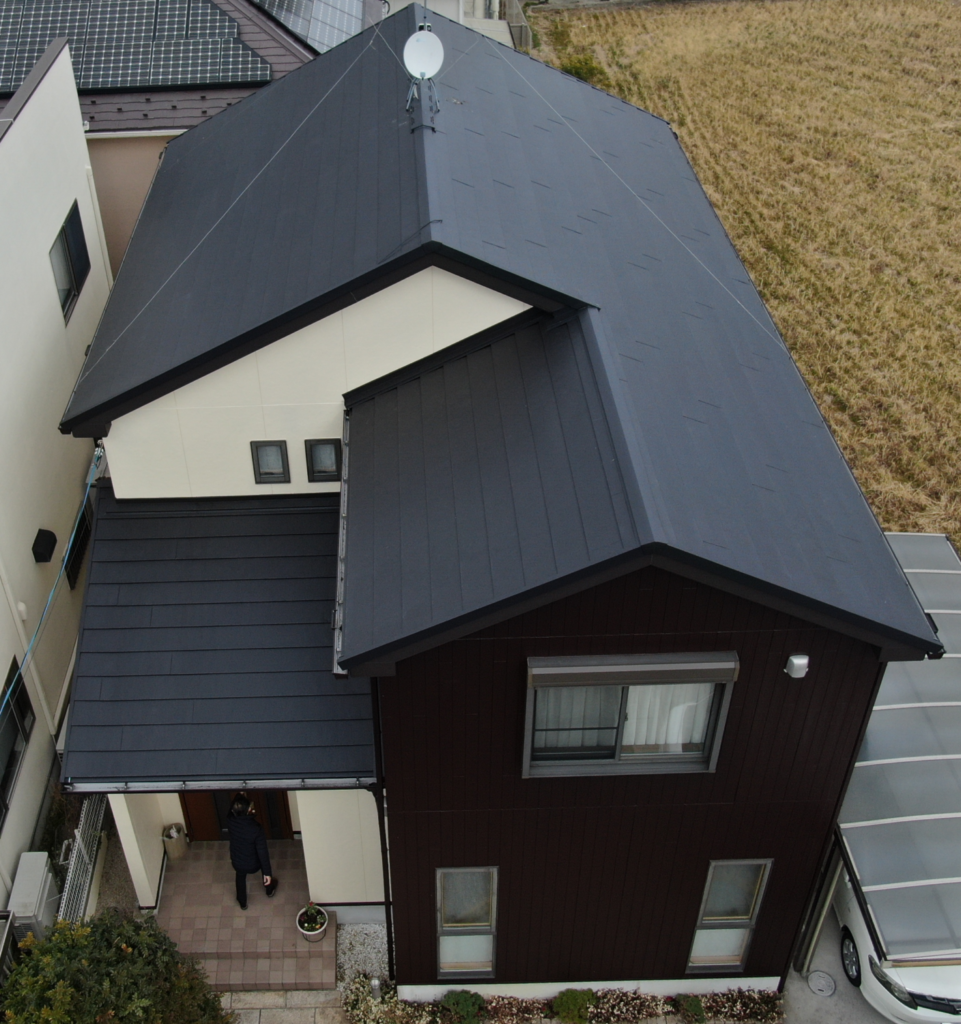 屋根材は断熱性、遮熱性に優れているスーパーガルテクトでの施工をさせていただきました。