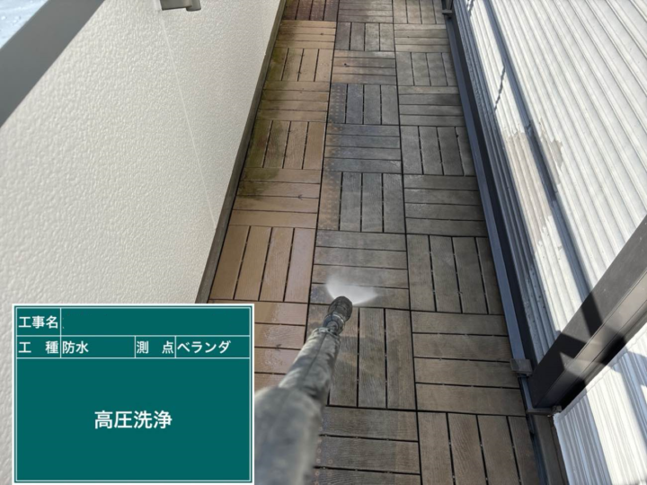 確実に洗浄されないと将来、接着不良等をおこし、防水層の性能が著しく低下してしまいます。