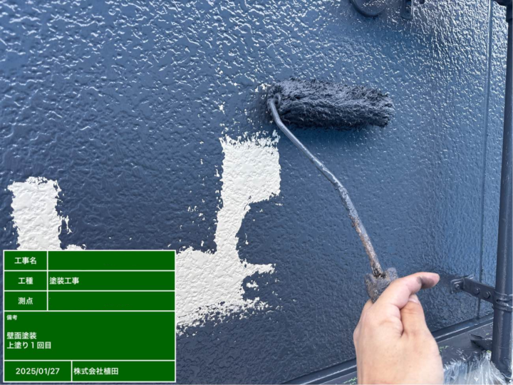 1回目の塗装で、下地との密着性が強化され、塗膜の厚みが増し、塗装の劣化を防ぐための基盤が作られます。