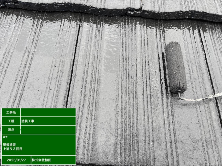 3回目の塗装は、塗膜の厚みを最大化し、屋根をさらに強固に保護するための重要な最終工程となります。