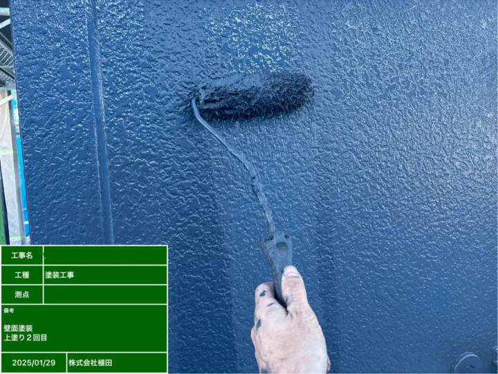 上塗りによって色ムラをなくし、塗装の厚みを均一にしながら、紫外線や雨風から外壁を守る役割を果たします。