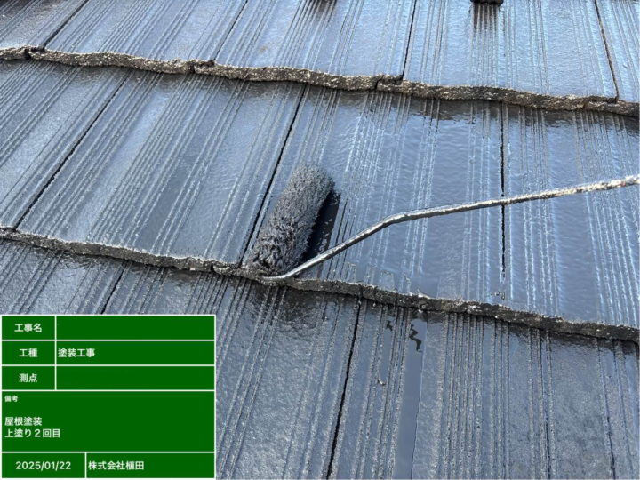 2回目の塗装で、屋根の保護力がしっかりと高まり、長期的に耐久性のある仕上がりになります。
