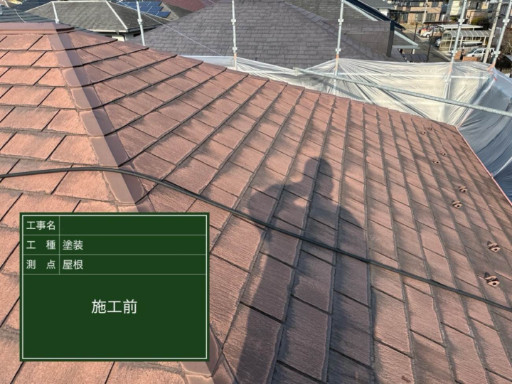 屋根には、雨風や紫外線による砂ぼこり・コケ・藻・古い塗膜の剥がれなどがこびりついています。