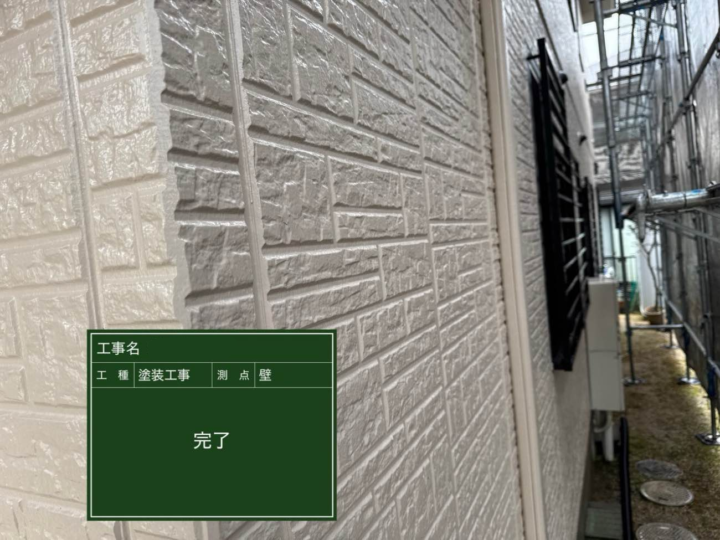 外壁にオイルスプレーが施されていたことで通常の塗装が難しくなっておりましたが、研磨や逆プライマーを駆使して無事密着良好な仕上がりにすることができました。