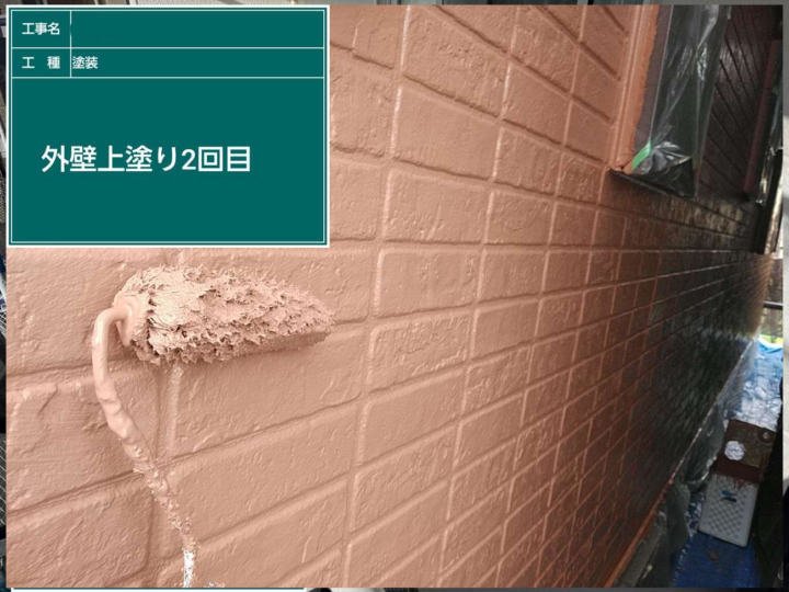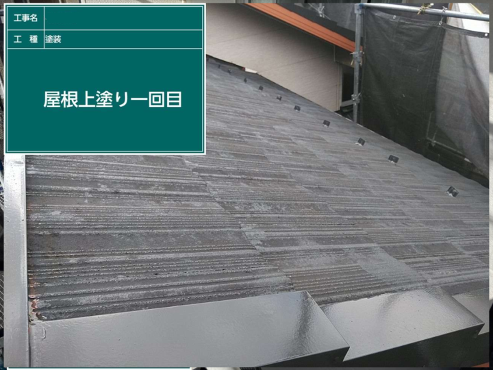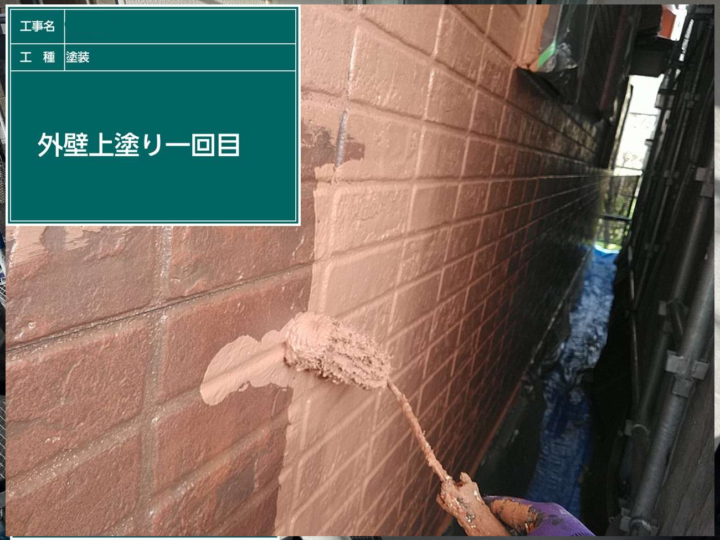 1回目の上塗りで、塗膜にしっかりと厚みを持たせて保護性能を高める役割があります。