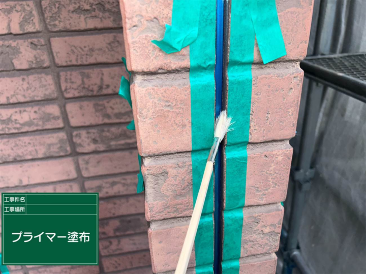 シーリング材の接着性を高めるために、専用プライマーを塗布します。