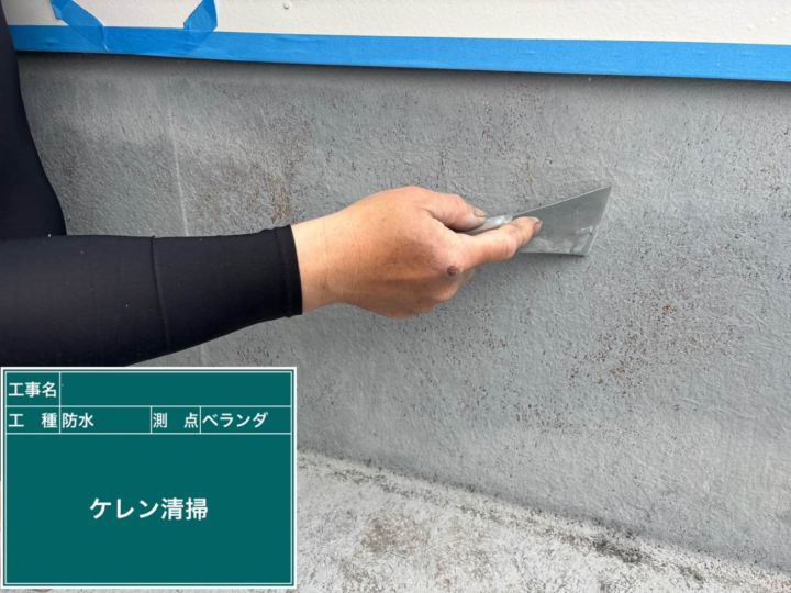 ホコリ・砂・コケ・油分などの汚れを除去することで、防水材が下地にしっかり密着します。