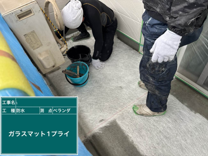マットガラスは防水層の強度を向上させる役割を持ち、耐久性のある防水膜を形成します。