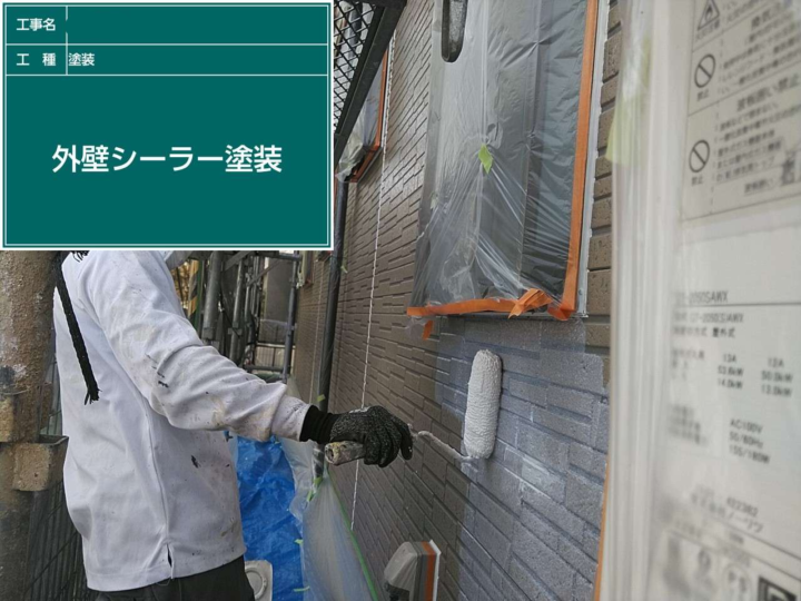 下地の吸水性をコントロールし、上塗り塗料の定着性と耐候性を確保するために欠かせない工程です。
