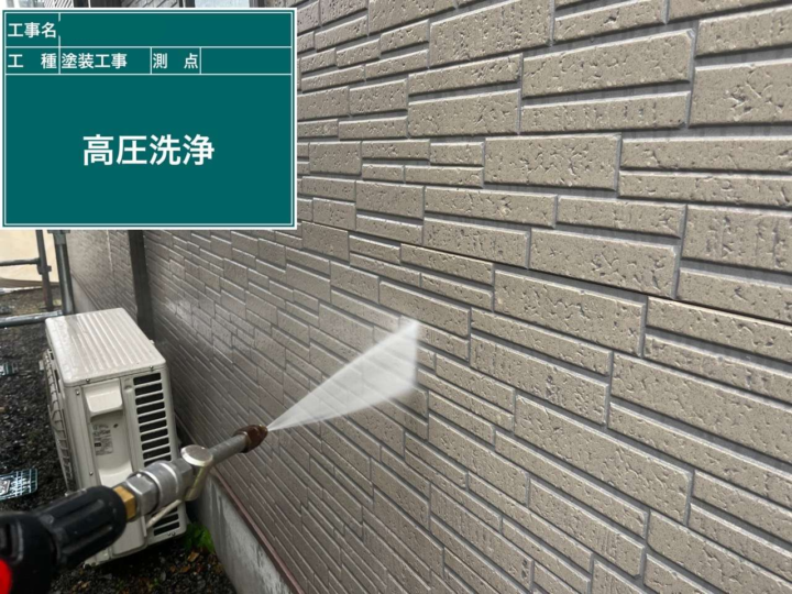 塗装前に外壁に付着している汚れや古い塗料をきれいに落とす工程です。