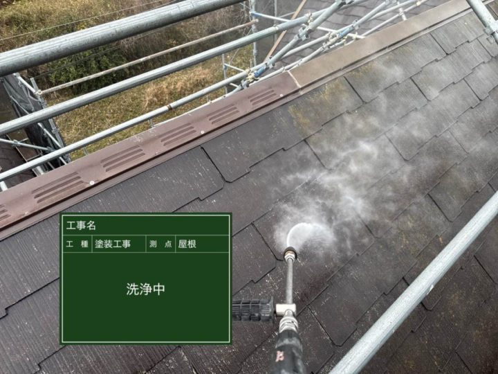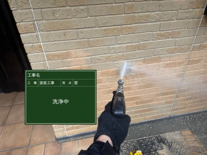 水に高い圧力をかけて外壁の汚れやカビ、古い塗膜などを洗い流す作業です。