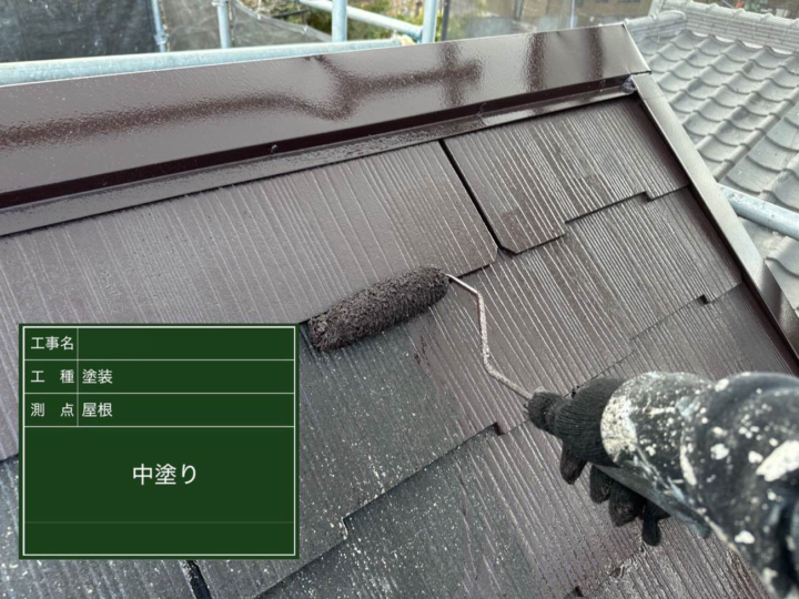 中塗りは、下塗りで整えた表面に“色”と“平滑さ”を加える役割があります。