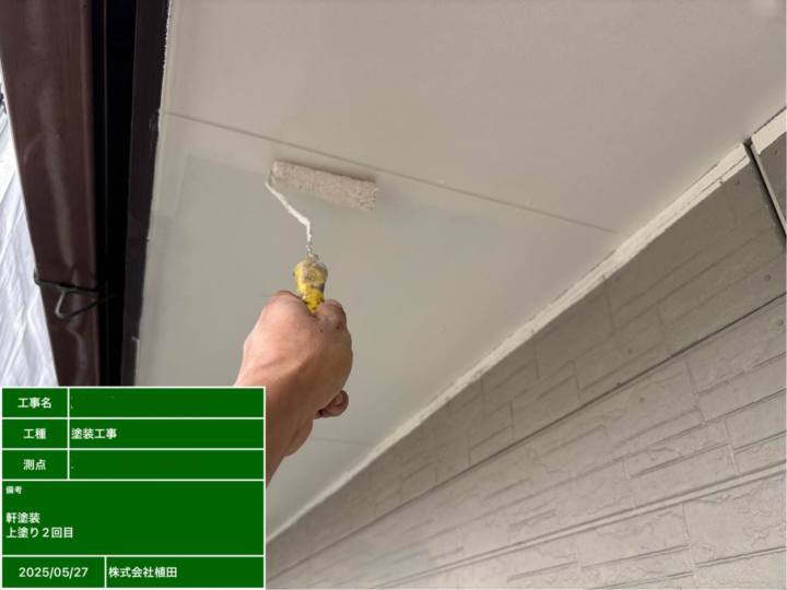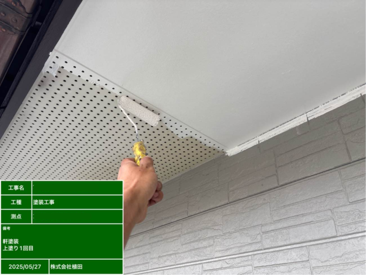 軒天は目線に近く、仕上がりが目立つ箇所なので、1回目で色ムラや吸い込みムラを減らすことが重要です。