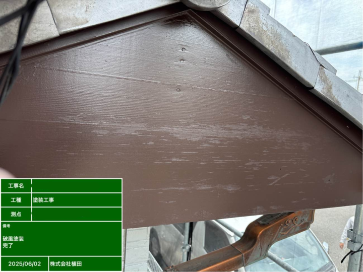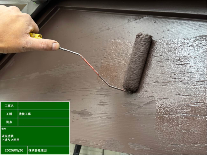 目立ちにくい部分と思われがちですが、風雨に最もさらされる場所だからこそ、1回目の上塗りを丁寧に行うことが、塗装全体の品質に大きく影響します。