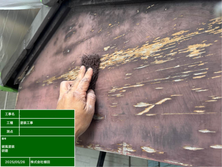 塗装前や中間工程で素地や旧塗膜の表面を磨いて整える作業です。