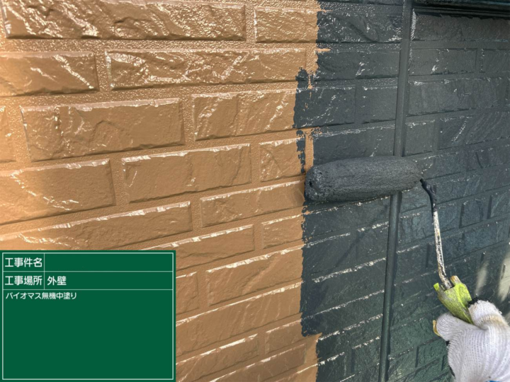 下塗りと上塗りの中間層として塗膜の厚みを確保し、耐久性や防水性を高めるための工程です。