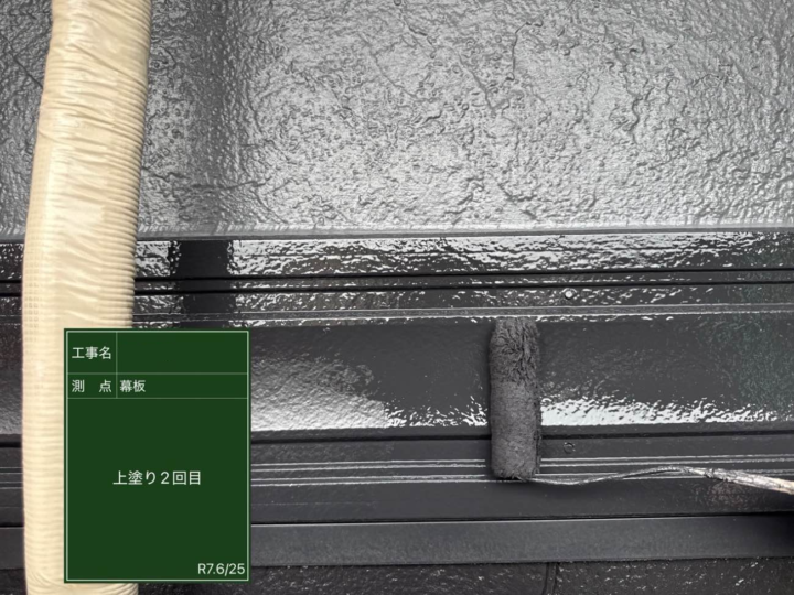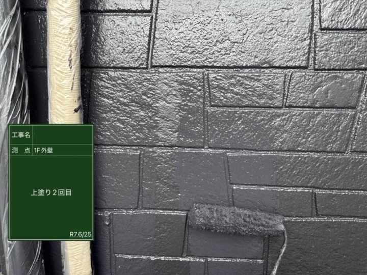 上塗り2回目は、塗膜の厚みと仕上がりの美しさを確保し、耐久性を高めるためです。