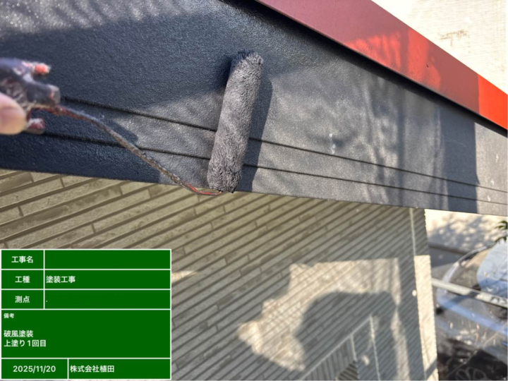 1回目で整えた塗膜の上に重ね塗りすることで、色ツヤが安定し、耐久性・防水性が向上します。美観を長く保つために欠かせない工程です。