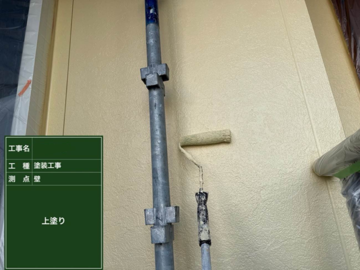 中塗りを丁寧に行うことで、上塗りが美しく仕上がり、外壁全体の耐候性や防汚性能が大きく向上します。