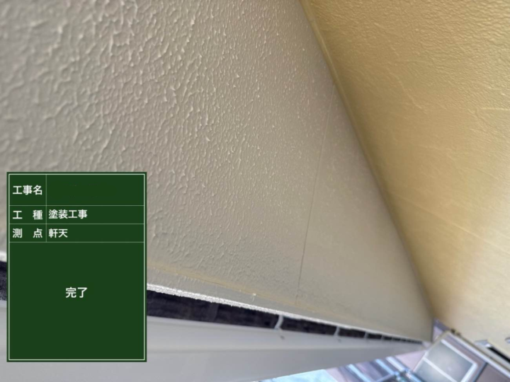 軒天は湿気がこもりやすく、カビや汚れが発生しやすい部分のため、塗膜の厚みと密着性をしっかり確保することが重要です。