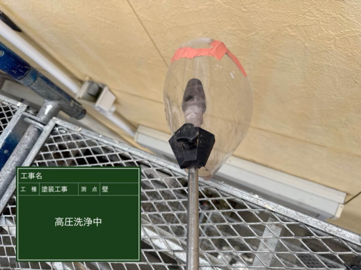 外壁塗装における高圧洗浄は、塗装前に外壁表面の汚れ・ホコリ・カビ・コケ・古い塗膜などをしっかり落とすための下地処理工程です。