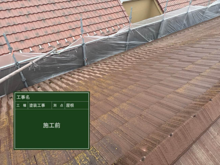 屋根は外壁以上に雨・風・紫外線・砂ぼこりの影響を受けやすく、長年の汚れやコケ、カビ、古い塗膜が付着しています。