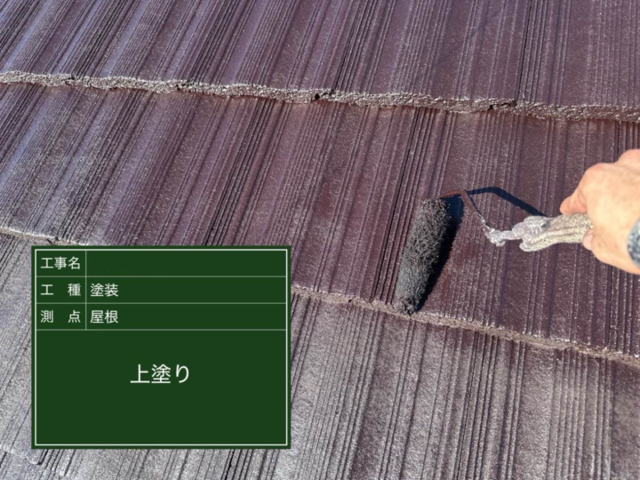 上塗りは、屋根塗装の最終仕上げ工程であり、完成後の耐久性・防水性・美観を決定づける重要な作業です。