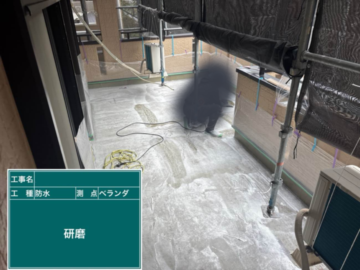 下地の汚れ除去・密着力向上・段差調整のために行う重要な下地処理工程です。