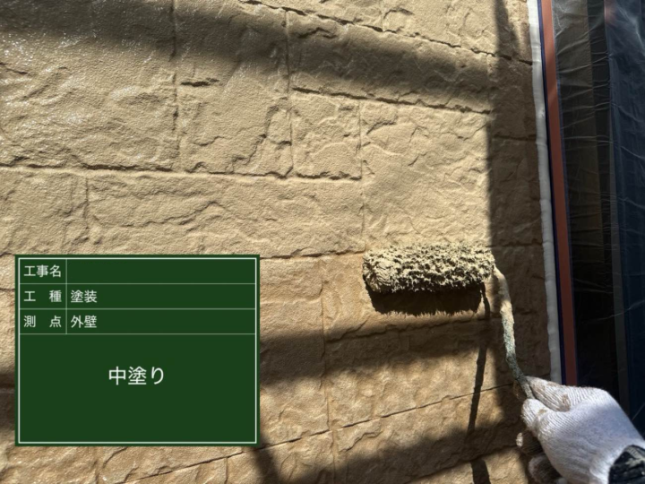 下塗りで整えた下地の上に中塗りを行うことで、塗膜の層を安定させ、外壁全体をしっかり保護します。