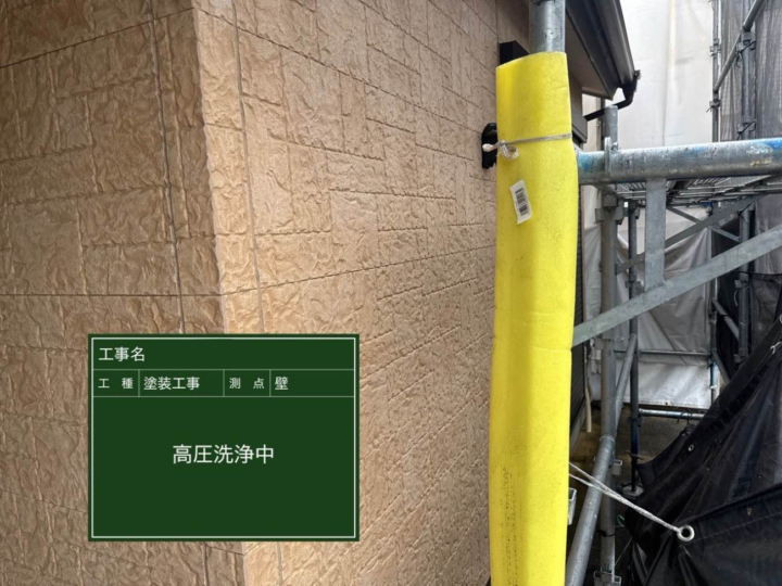 外壁の表面についた汚れ・カビ・コケ・チョーキング(粉状の劣化)などを、高圧の水で一気に洗い流す作業です。